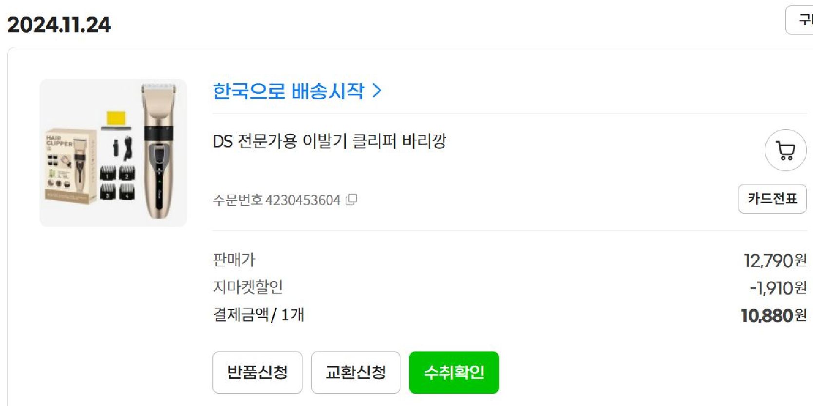 | 초기 불량인 이발기 고친 후기 (0) | 2024.12.11 |